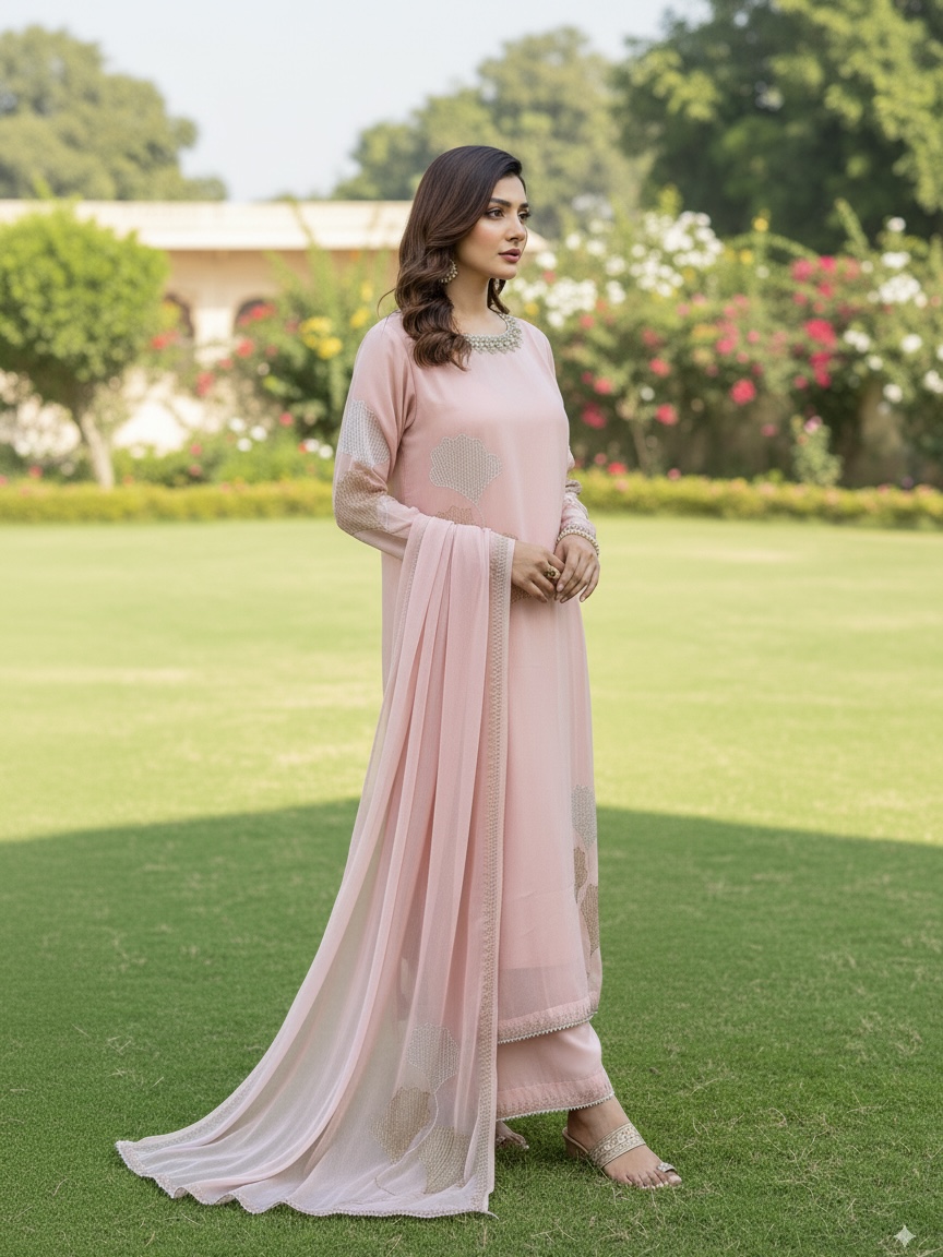 A classic long shirt paired with elegant plazo and dupatta for a refined traditional look.